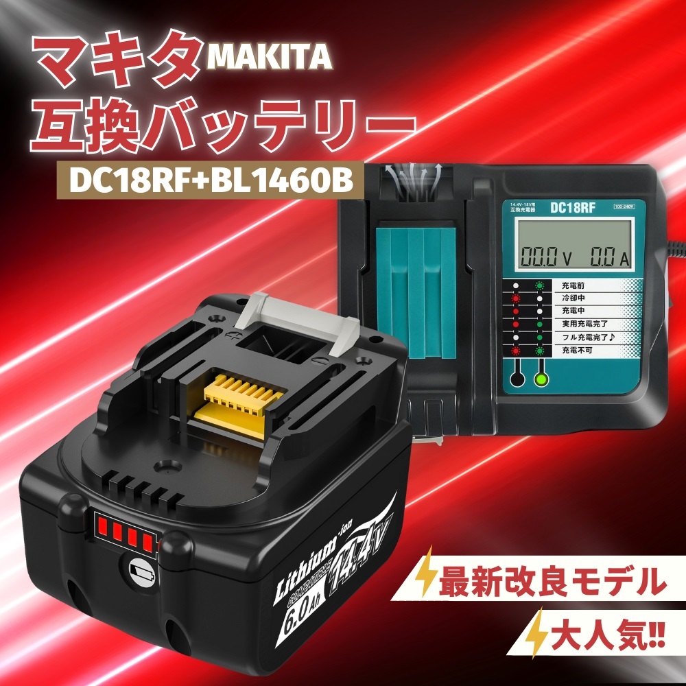 - (A) マキタ makita 互換 BL1460B 1個 + DC18RF 液晶付 充電器 バッテリー セット