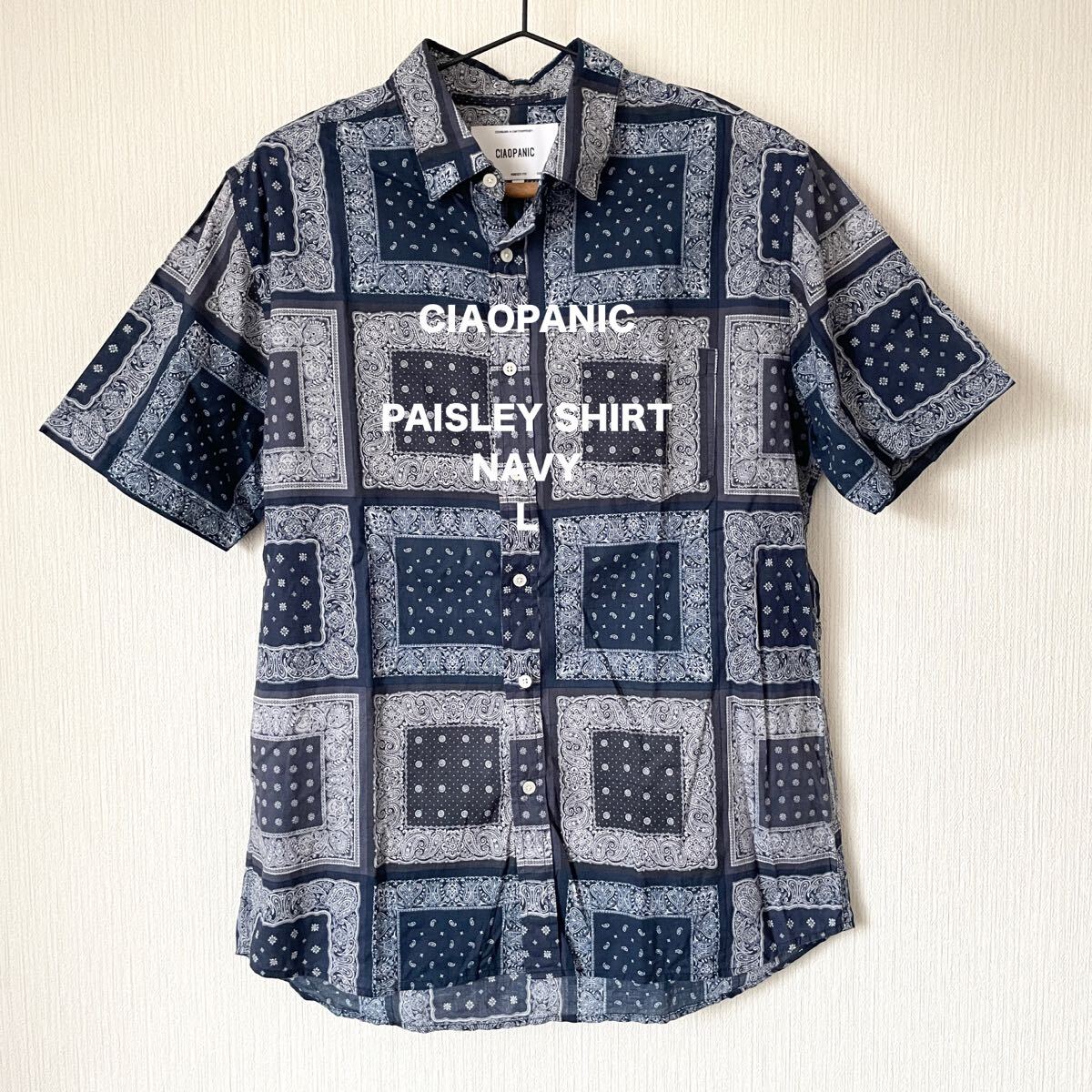> 【CIAOPANIC】チャオパニック ペイズリー柄シャツ ネイビーブルー 紺色 L 半袖 夏服 メンズ 匿名配送 アメカジ 古着 カジュアル