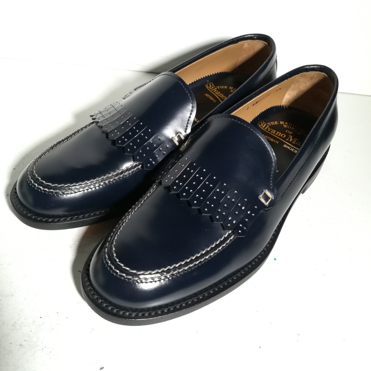 - d0063 【新品同様・試着程度】 ★シルバノマッツァ Silvano Mazza★ コードバン キルトローファー 6 1/2 ネイビー 革靴 紳士靴 本革