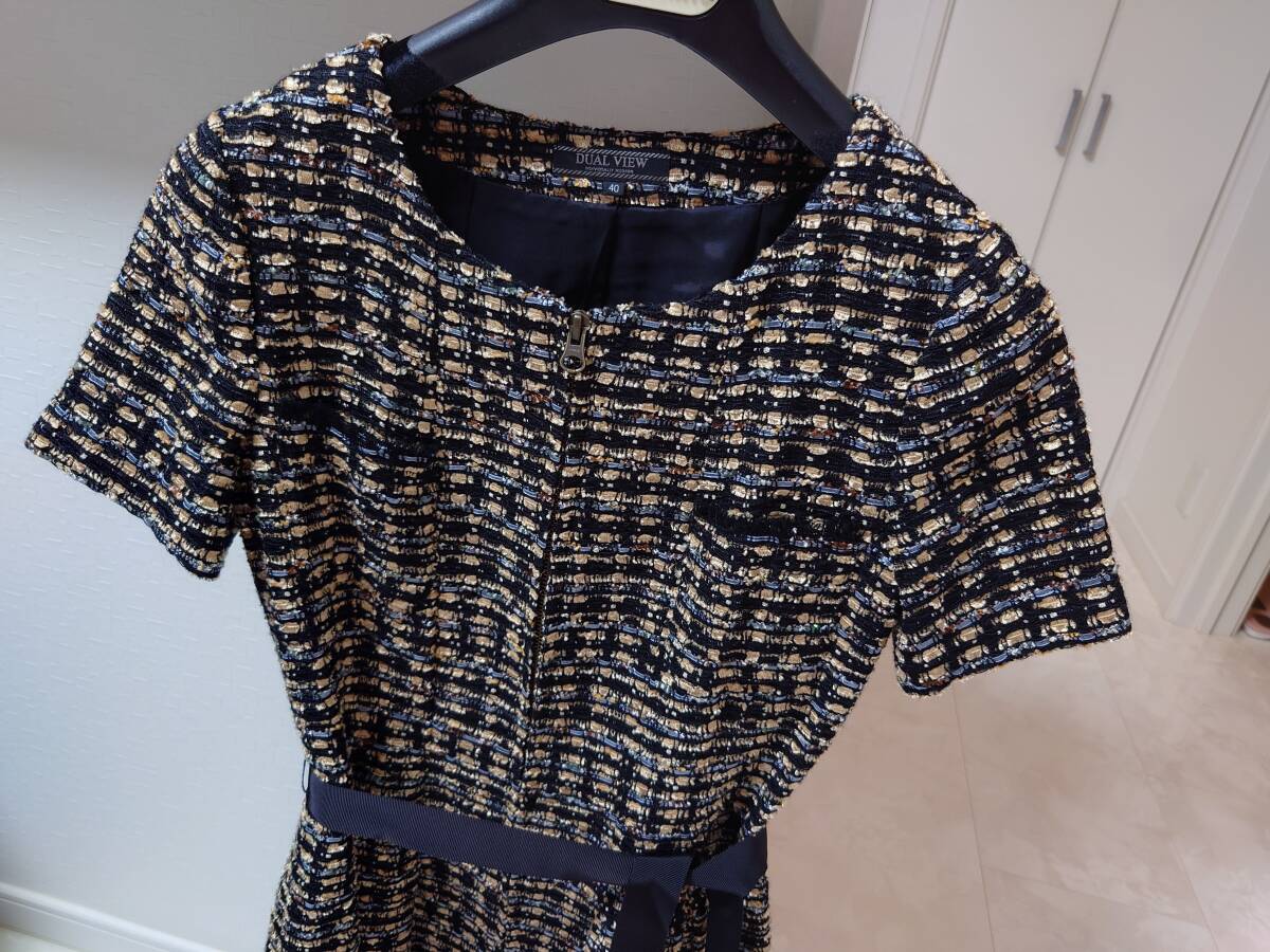- DUAL VIEW(デュアルヴュー) ツイードワンピース 40 グログランテープ ジップアップ
