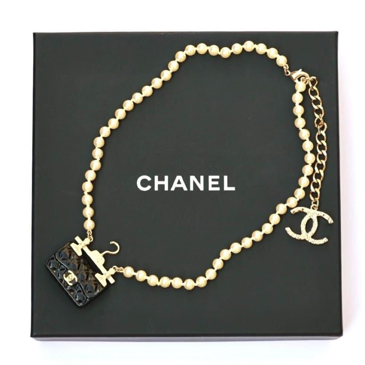 > シャネル ネックレス バッグ型 ハンガー マトラッセ ココマーク フェイクパール ゴールド ブラック 黒 AB9848 B23 アクセサリー CHANEL