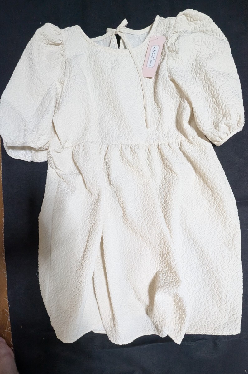 - 未使用 パフスリーブチュニック ふくれジャガード ペプラムブラウス Lサイズ ワンピース