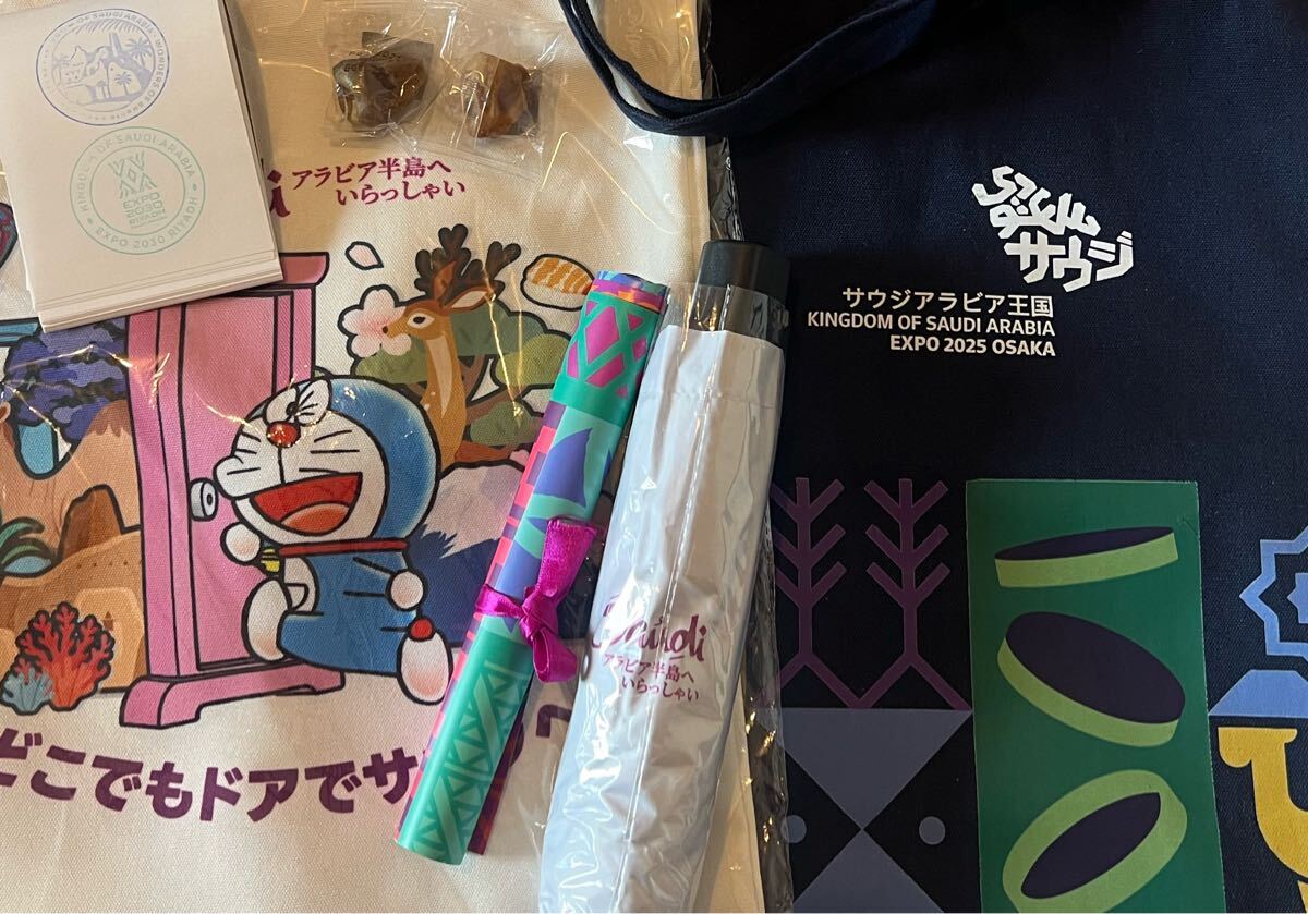 - 万博 EXPO サウジアラビア 日傘 雨傘 万博 非売品 ドラえもん トートバッグ エコバッグ らくだ折り紙 関西万博 EXPO2025
