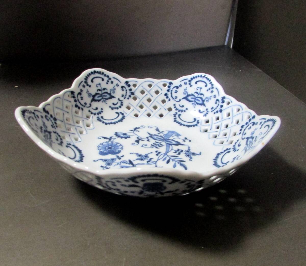 > BlueDanube ブルタニュ-ブ透かしバスケット 編み盛皿 約:(19.5㎝x19.5㎝xH5.5㎝)
