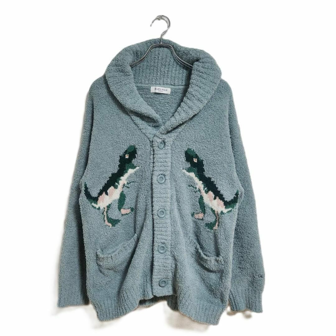 - ジェラートピケ カーディガン 恐竜デザイン もこもこ素材 グリーン L かわいい