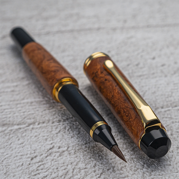 - ■●限定100本【Kuretake/呉竹】高級 万年毛筆 特別モデル 夢銀河シリーズ 天然木「花梨」銘木 穂先 イタチ毛 専用桐箱 1円~ /kure06