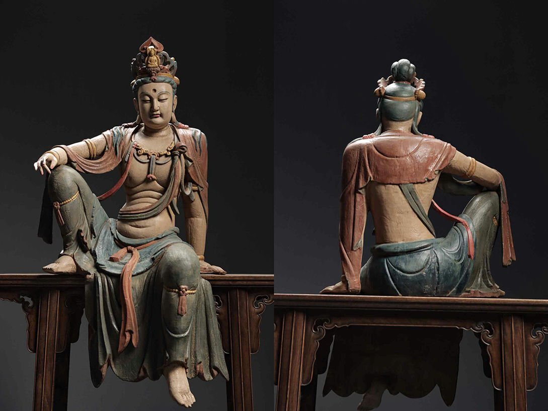 > ▼渡鶴羽▼M6980宋時代 楠木木彫彩絵 自在観音造像 楠木細工彫刻★仏教古美術★仏像★細密細工★廃寺旧蔵★廃寺買出品