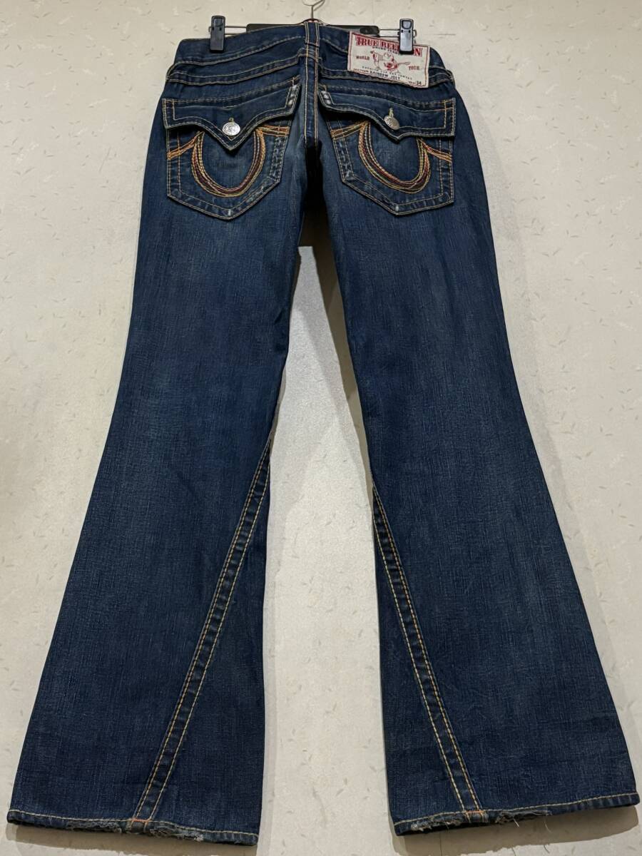 > ※TRUE RELIGION トゥルーレリジョン RAINBOW JOEY レインボー ダメージデニムパンツ 濃いめインディゴ 米国製 29 BJBE.G