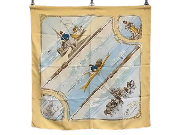 > エルメス スカーフ カレ90 GRONLAND グリーンランド エスキモー 犬ぞり シルク100% - ベージュ系【本物保証】