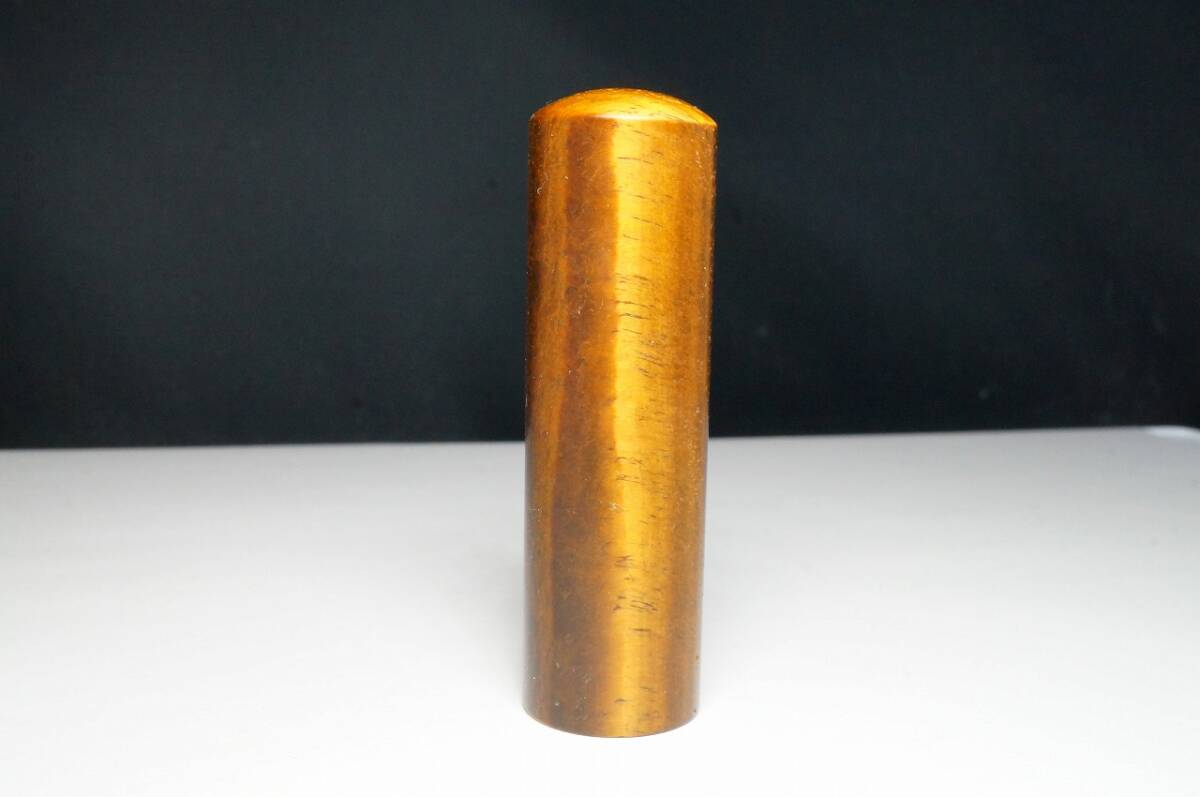 - 35年前の在庫!美しい目が出る天然虎目石(タイガーアイ)の印材カッコ良さ際立つ艶消し仕上げ【印鑑】41g