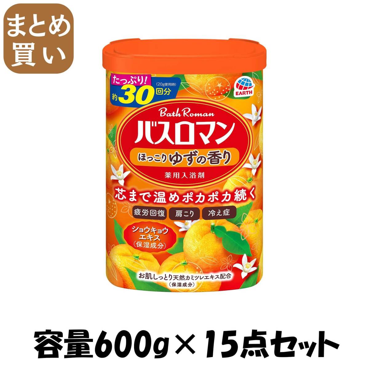 - 【まとめ買い】バスロマン ほっこりゆずの香り 容量600G×15点セット アース製薬 入浴剤
