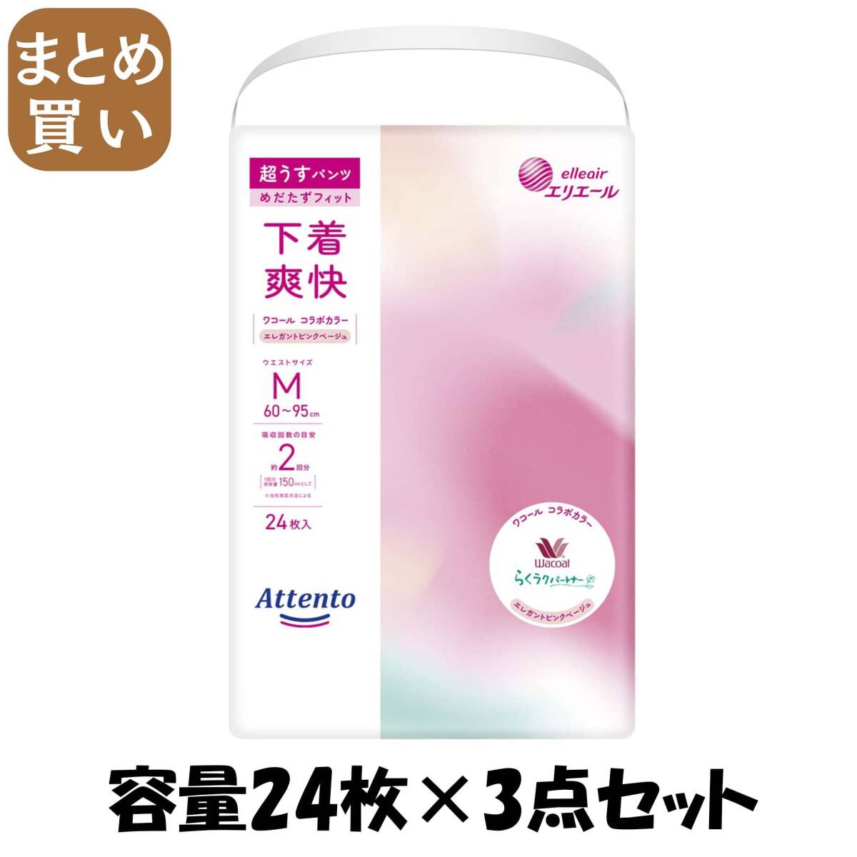 - 【まとめ買い】アテント超うすパンツ下着爽快エレガントピンクべージュM24枚 容量24マイ×3点セット 大王製紙 大人用オムツ