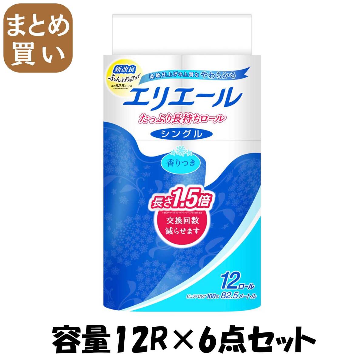 - 【まとめ買い】エリエールトイレットティシューたっぷり長持ち12ロール(シングル) 容量12R×6点セット 大王製紙