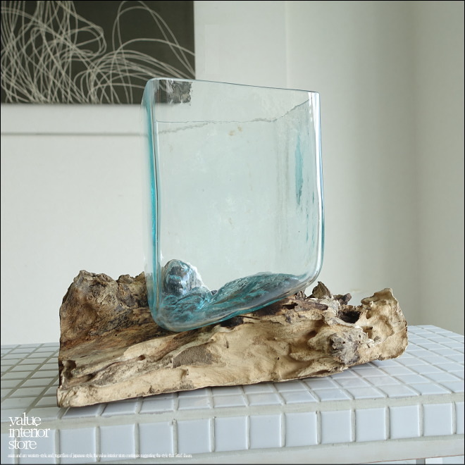 - 硝子フラワーベースSqli / L-10 花瓶 メダカ鉢 めだか鉢 プリミティブガラスベース 吹きガラス 手作り 一点物 自然な様