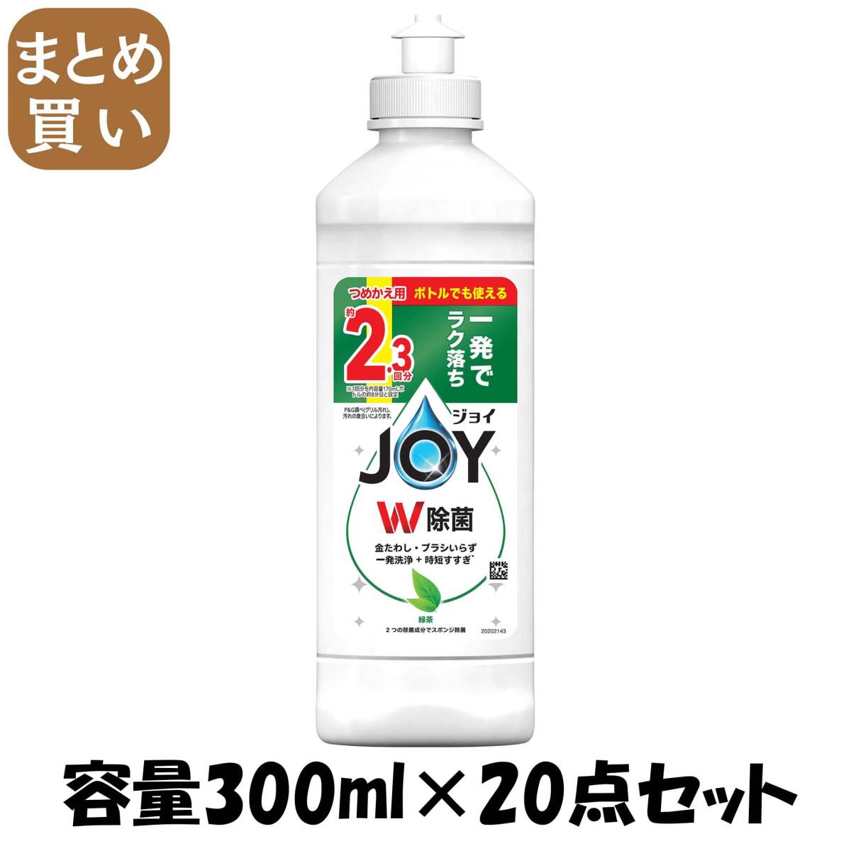 - 【まとめ買い】除菌ジョイコンパクト 緑茶の香り キャップ付き詰替 容量300ML×20点セット P&G 食器用洗剤
