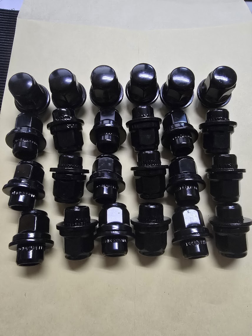 - M12 P1.5 21HEX トヨタ レクサス 三菱 純正アルミホイール用 平面座 ブラック ナット 24個新品 送料無料 黒 平座