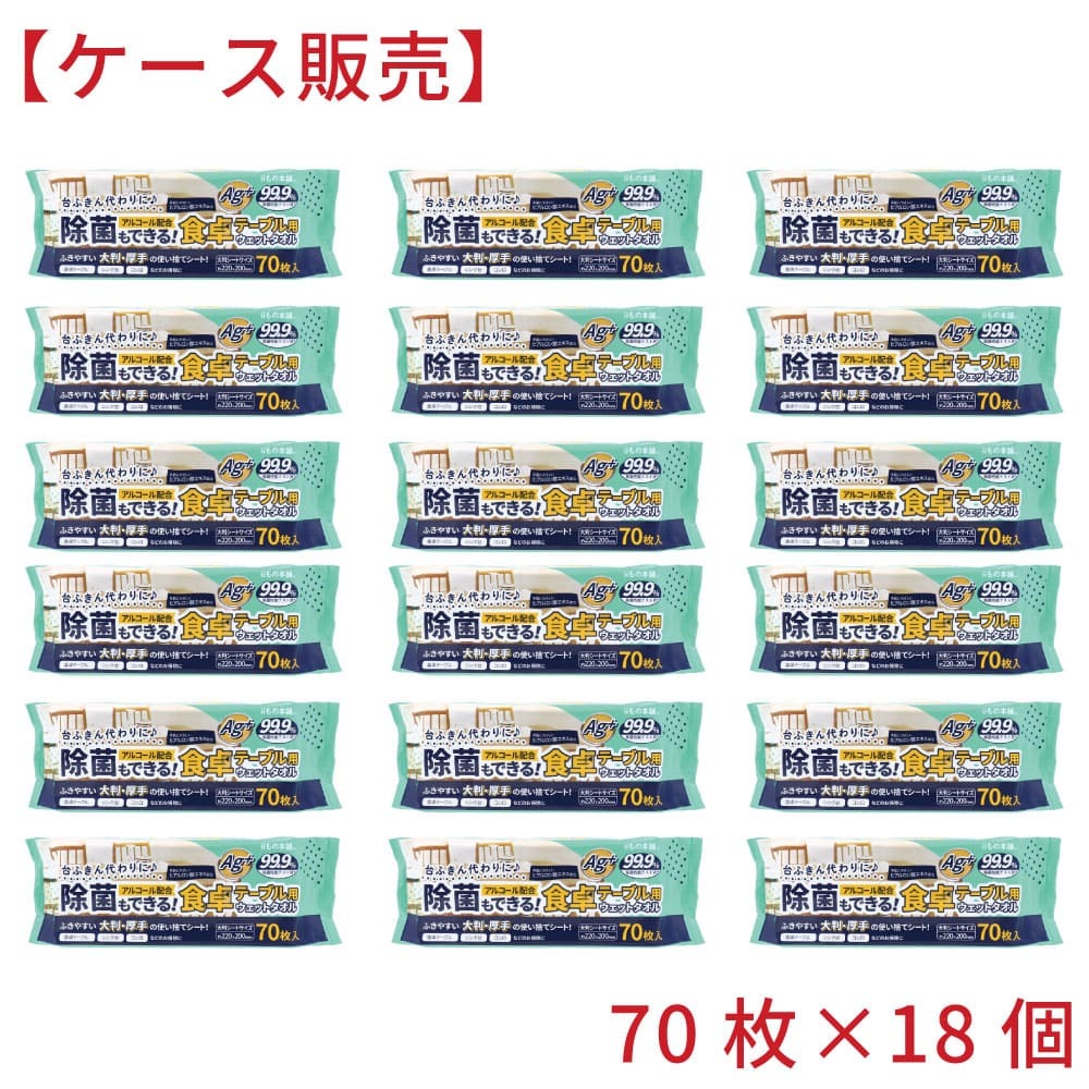 - 除菌もできる! 食卓テーブル用ウェットタオル 70枚入×18個【ケース販売】