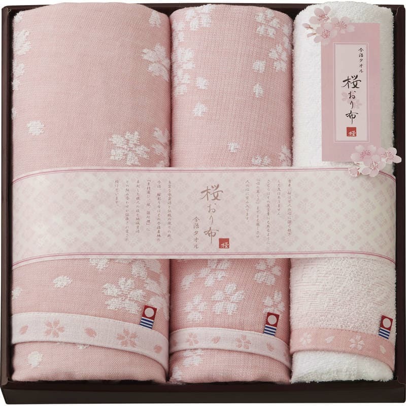 ▼▼▼▼▼▼注意事項▼▼▼▼▼▼・送料込み(送料800円が商品価格に含まれています) 一部地域では追加送料あり。・お取り寄せ商品です。弊社にて手配後、メーカー・卸業者からの直送になります。・まれにメーカー欠品、出荷遅延等が発生致します。問題発生時は別途メールにてご連絡致します。・配送方法の指定、日時指定、置き配、ギフト対応、他商品との同梱配送などは対応できません。・まとめ買いや複数購入の場合は通常より発送に時間が掛かる場合がございます・複数個口の場合、2階以上への搬入ができない場合があります。(その場合は1階での受け渡しとなります)・大型連休、お盆、年末年始などは発送をお休みさせていただく場合がございます・メーカー都合により、パッケージは予告なく変更される場合がございます・梱包用のダンボールはリサイクル品を使用させていただきます。・注文に関するご連絡(注文確定通知・発送通知など)はメールでご案内させていただきます※商品ページの内容について、少しでもご不明な点などがございましたら購入前に一度ご連絡ください▲▲▲▲▲▲注意事項▲▲▲▲▲▲〇商品説明良質な水資源と伝統の織りの街、今治。卓越した職人の技により伝承され、「桜おり布」は愛され続けています。〇商品仕様【パッケージサイズ】317×50×317mm【内容】バスタオル:600×1200mm×1、フェイスタオル:330×800mm×2【材質】綿100%【生産国】日本【パッケージ形態】化粧箱入(出典:スタイレム瀧定大阪(Stylem Takisada-Osaka))