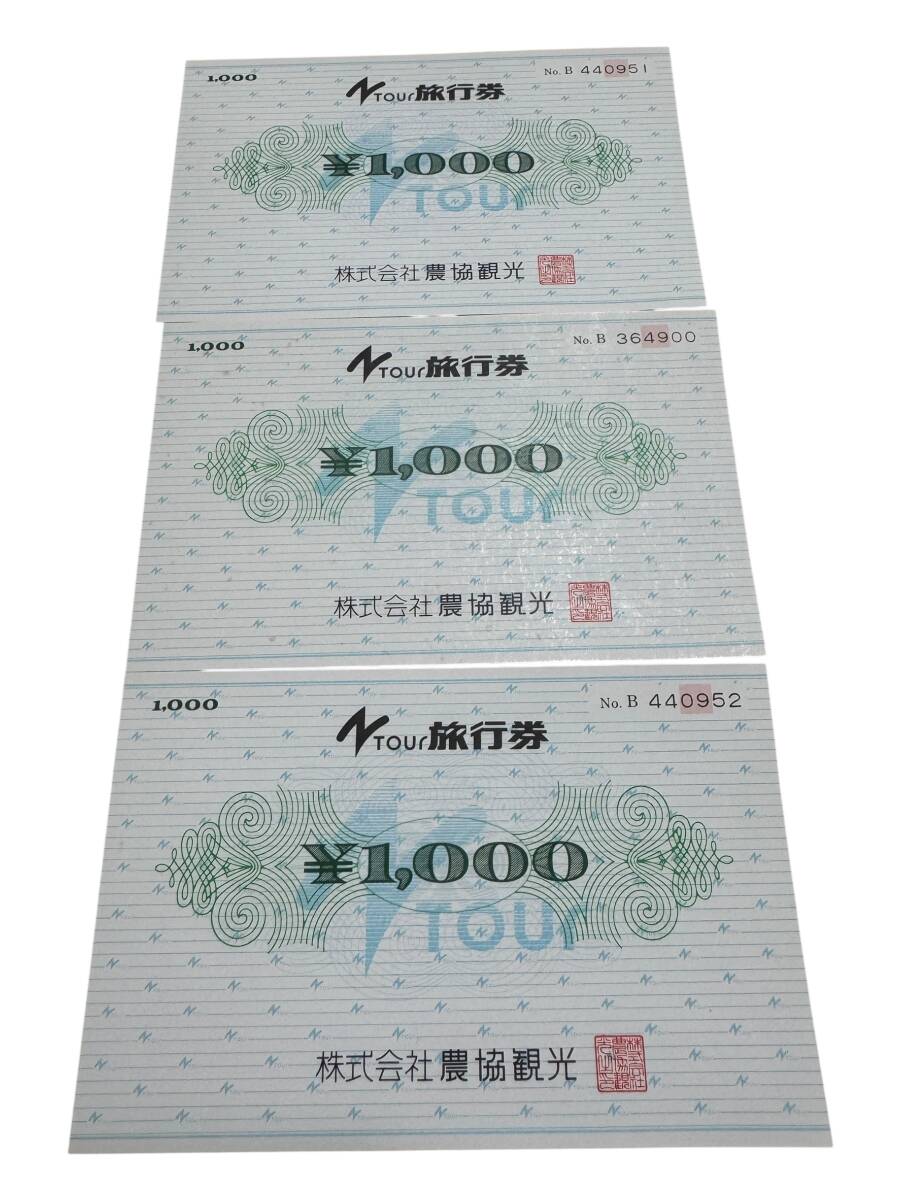 - O25072802 農協観光 NTOUR 旅行券 JA額面1000円×3枚 3千円分 Nツアー 現状品