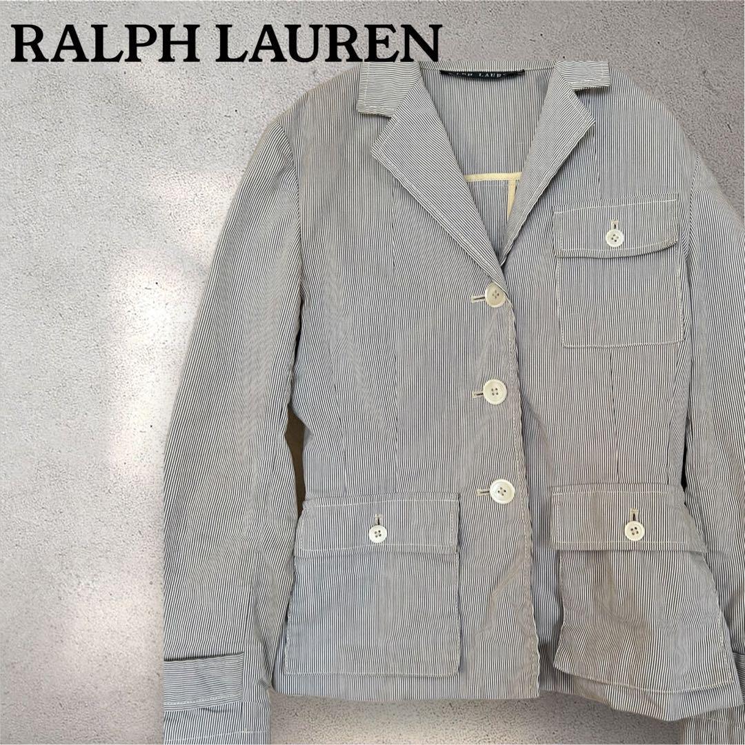 - ラルフローレン グレー ストライプ テーラードジャケット 古着 綿100%
