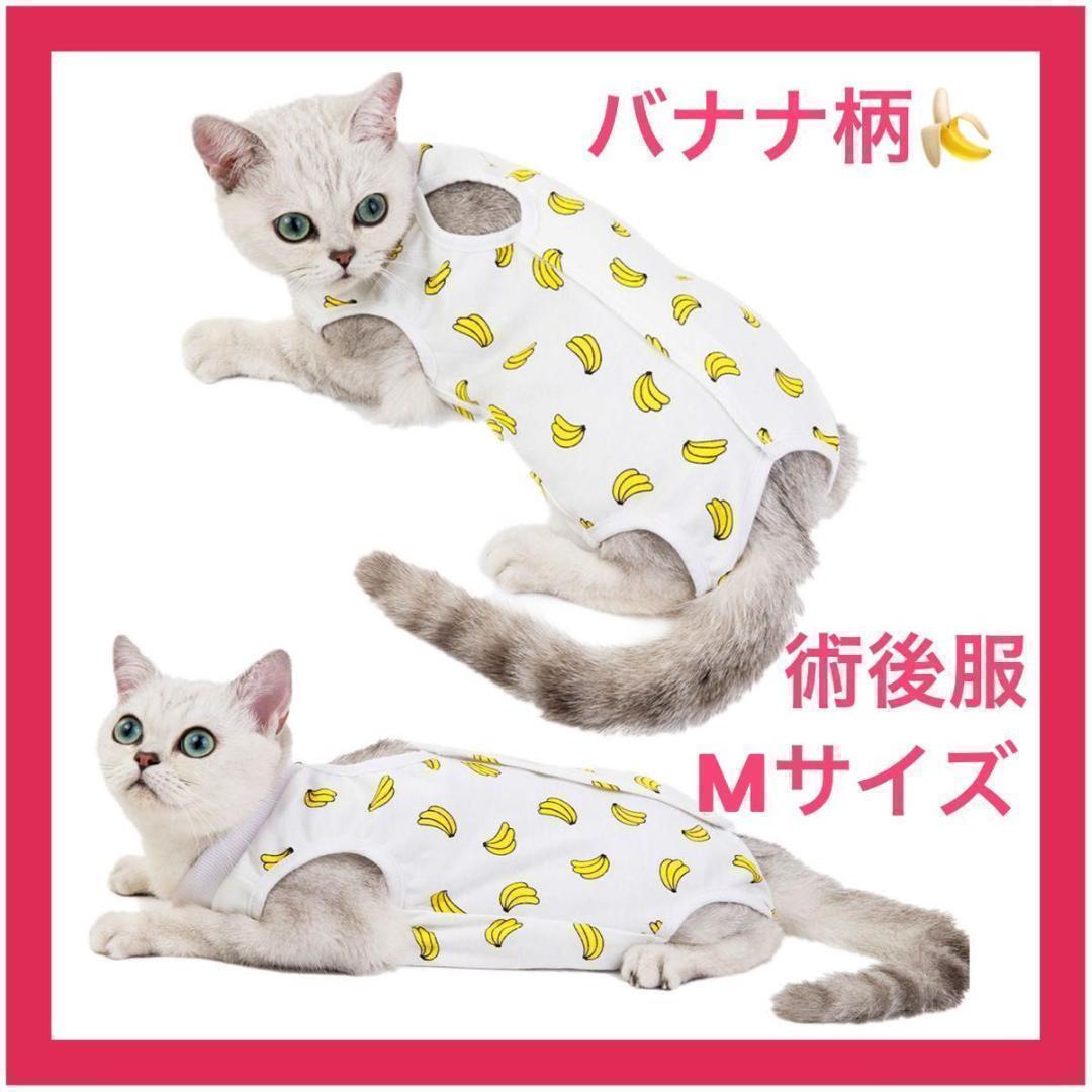 - 【ねこ用】【Mサイズ】術後服 保護服 バナナ柄 引っ掻き防止 マジックテープ