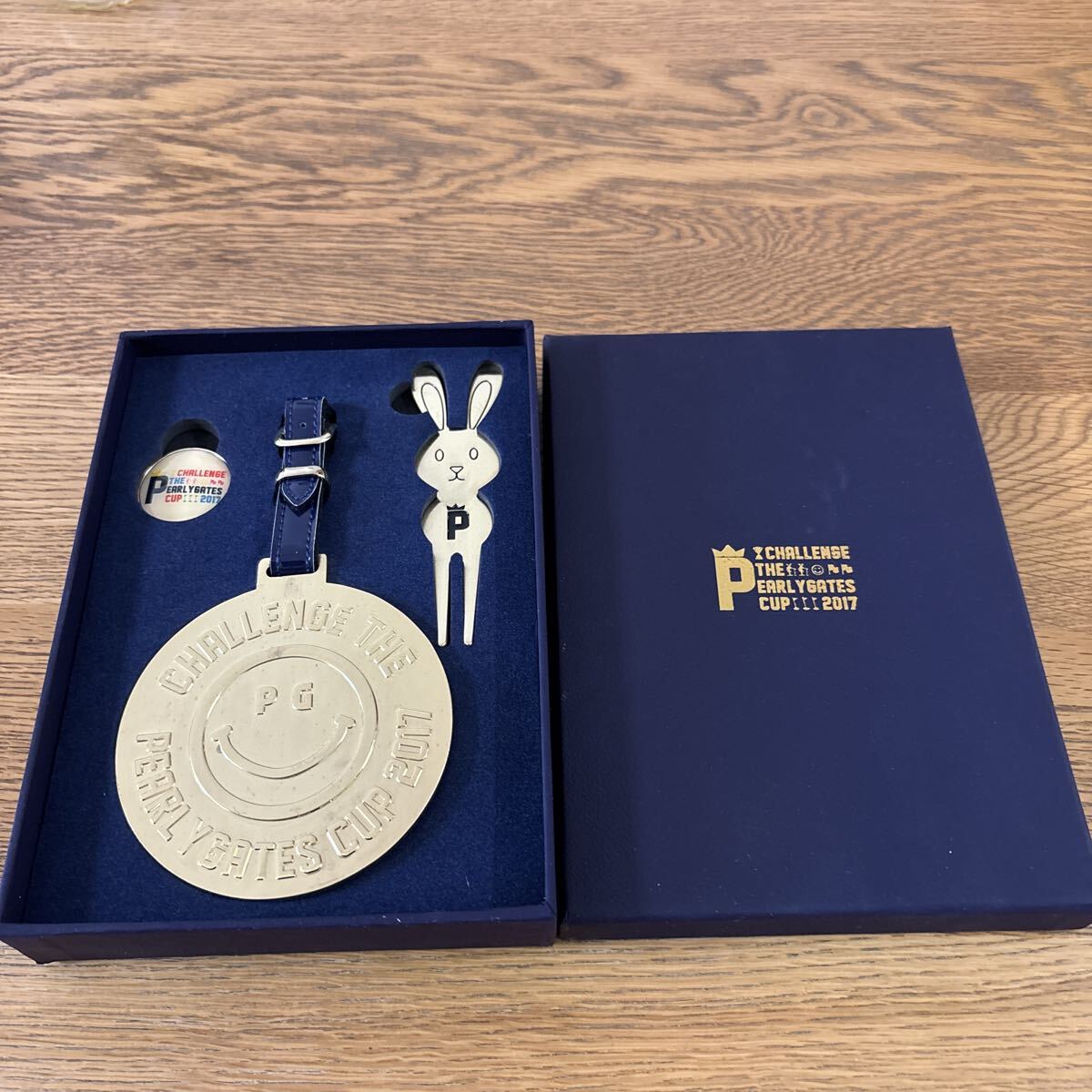 > チャレンジ・ザ・パーリーゲイツカップ2017グッズ ボールマーカー・ネームタグ・グリーンフォーク ゴールドカラー 未使用品 送料込
