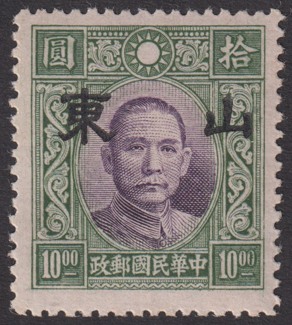 - 中国占領地切手 JPS:3C67 山東 省名加刷 大字 大東版孫文 すかしなし 10円 未使用 2096