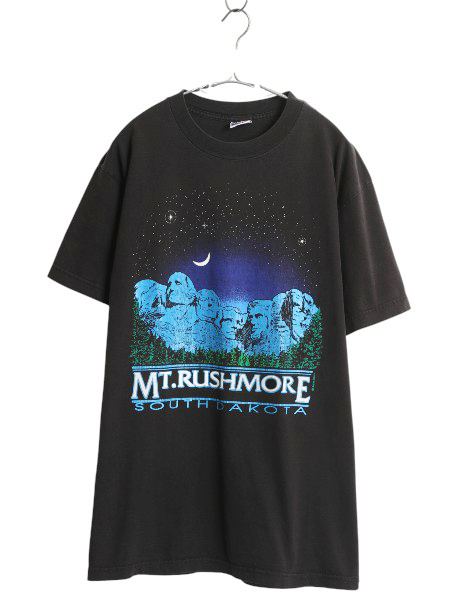 > 90s USA製 ラシュモア アート イラスト プリント Tシャツ メンズ XL / オールド グラフィック ヘビーウェイト スーベニア 大きいサイズ 黒
