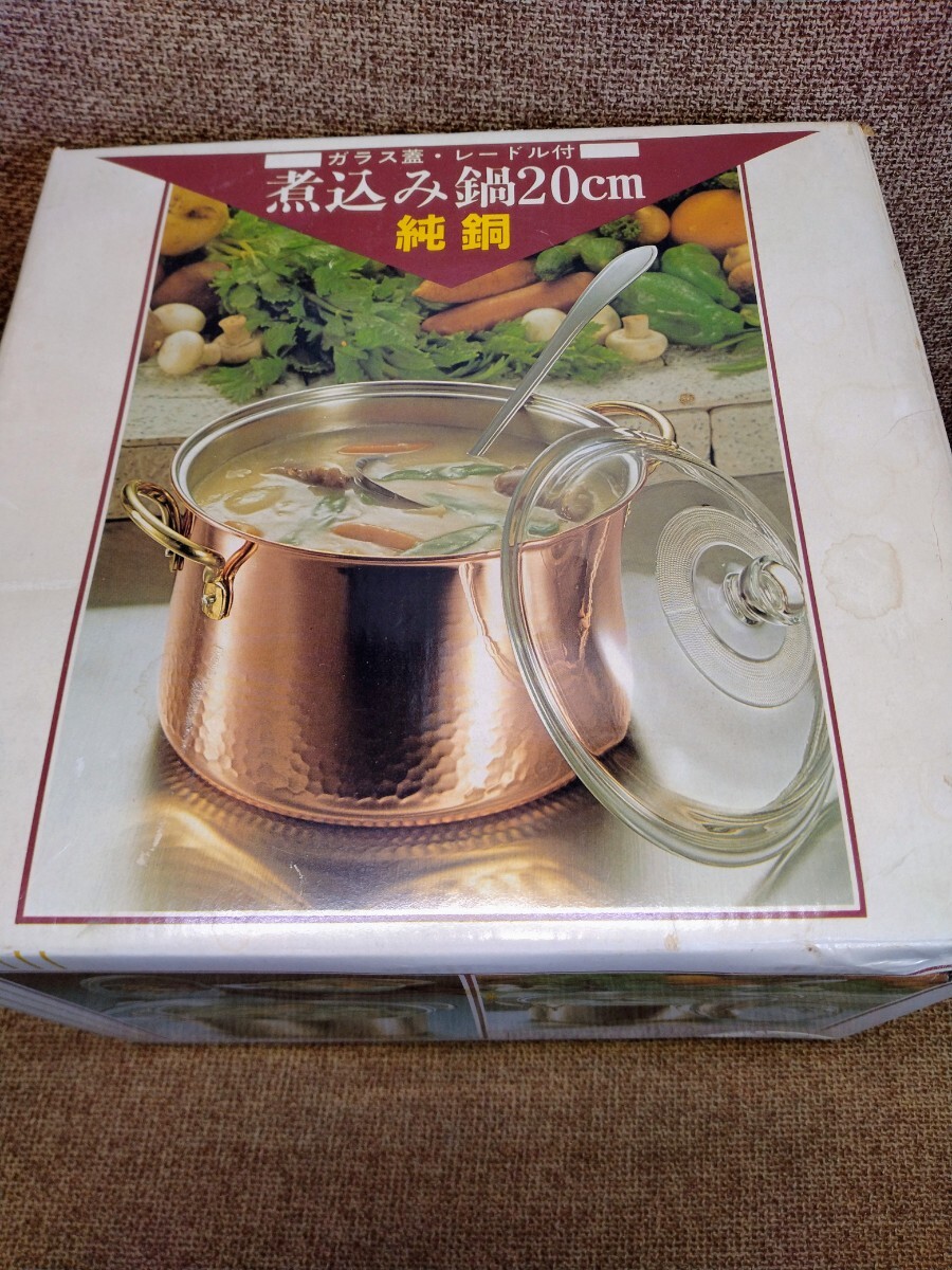 - K278【新品/保管品】 純銅 煮込み鍋 ガラス蓋 レードル 付
