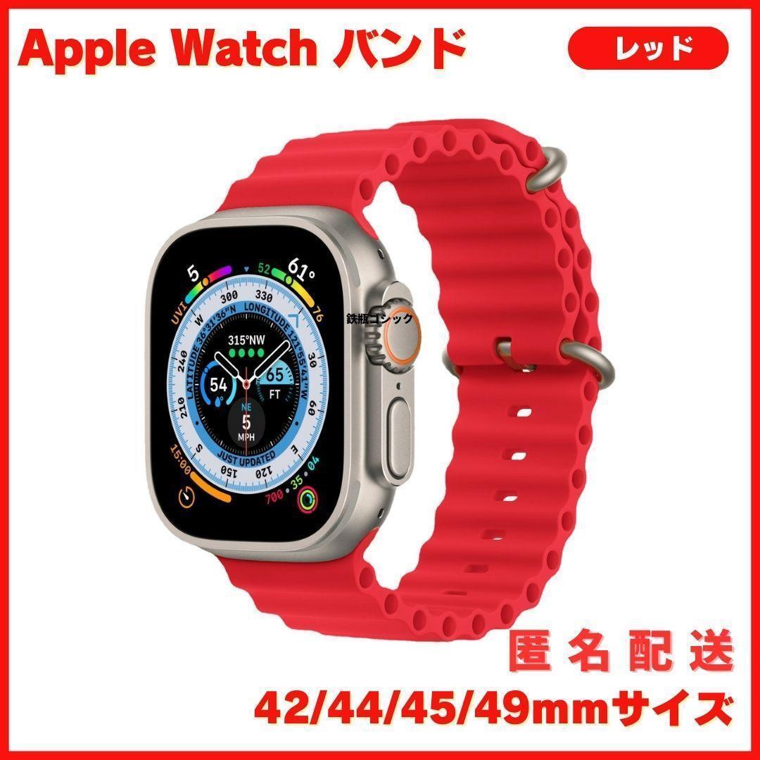 > アップルウォッチバンド Apple Watch band オーシャンバンド風 スポーツ 42㎜/44㎜/45㎜/49㎜ 共通サイズ 赤 レッド シリコン 互換品