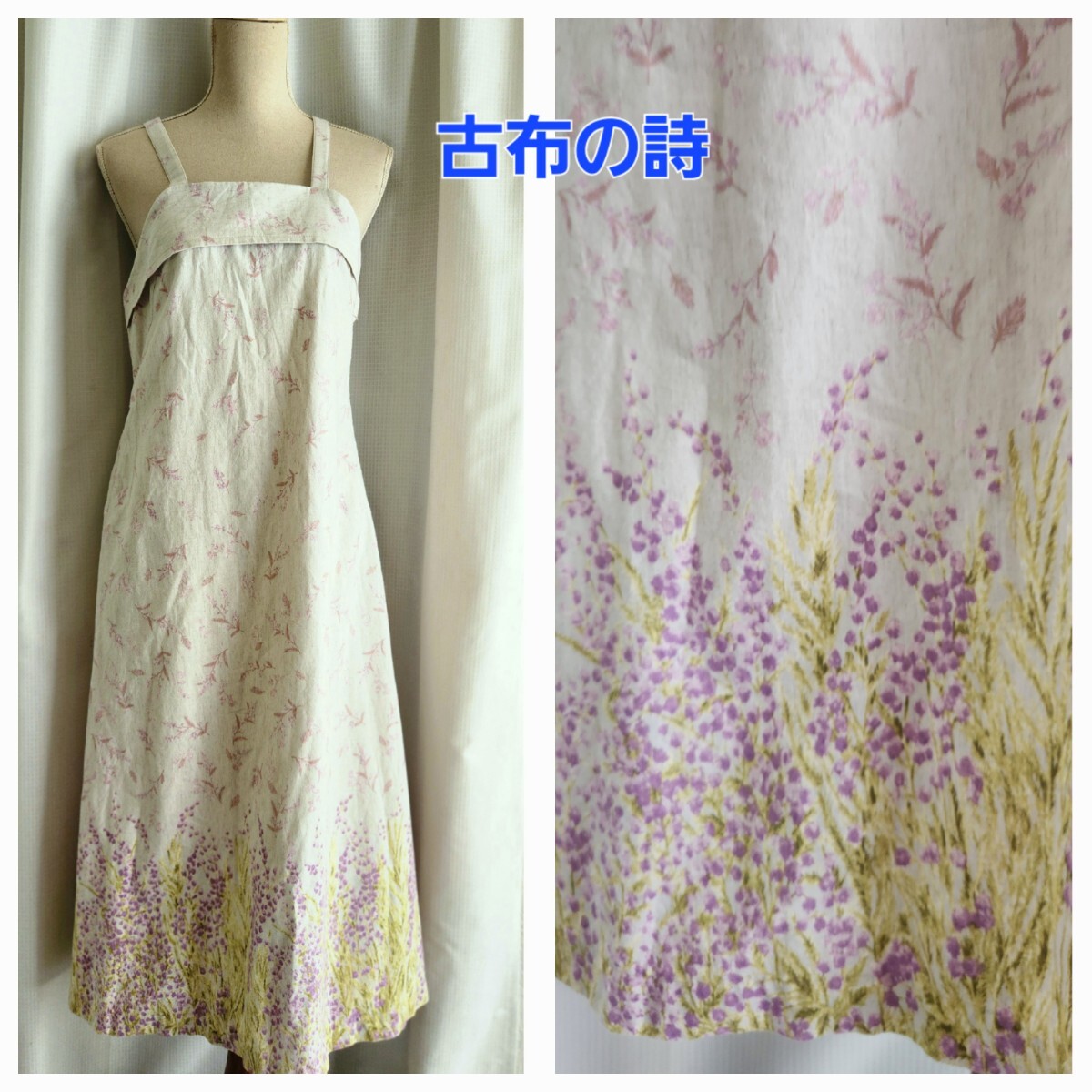 - 大変美品 古布の詩 民 可愛いジャンパースカート ベアワンピース 麻?