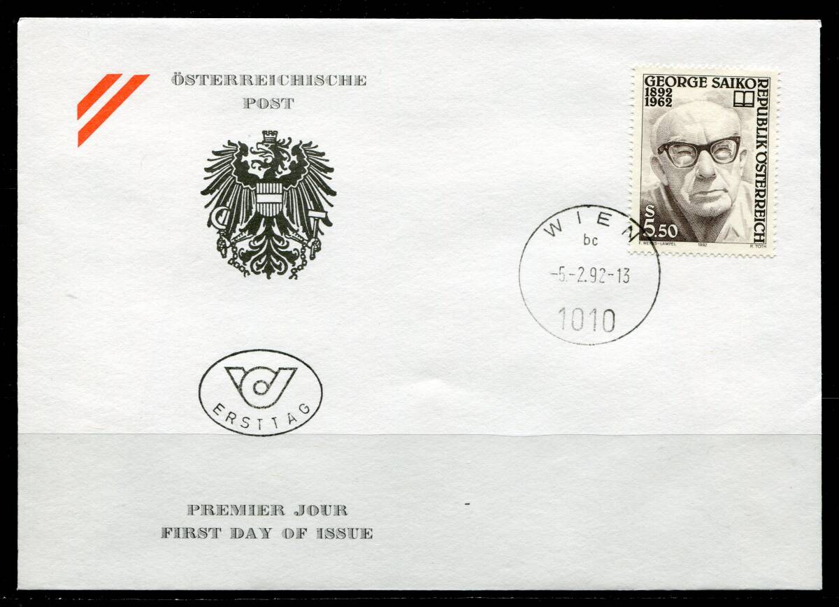 - オーストリア 1992年 人物 作家 FDC 初日カバー z8666