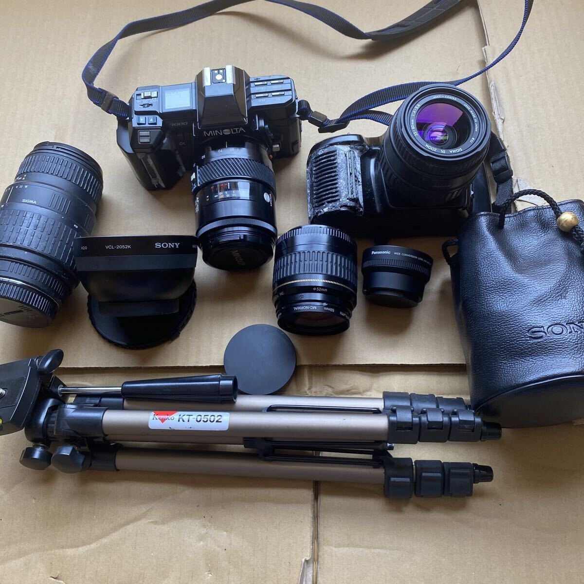 > Minolta 7000 a3xi Canon Sony Panasonic Sigma テレコンバーター レンズ 三脚 AFカメラ ジャンクまとめ 管理5