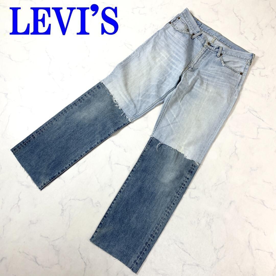 > LEVI'S リーバイス 502 デニム ジーンズ パッチワークデニム 裾切りっぱなしデザイン コットン100% リメイク 33-33 C3425