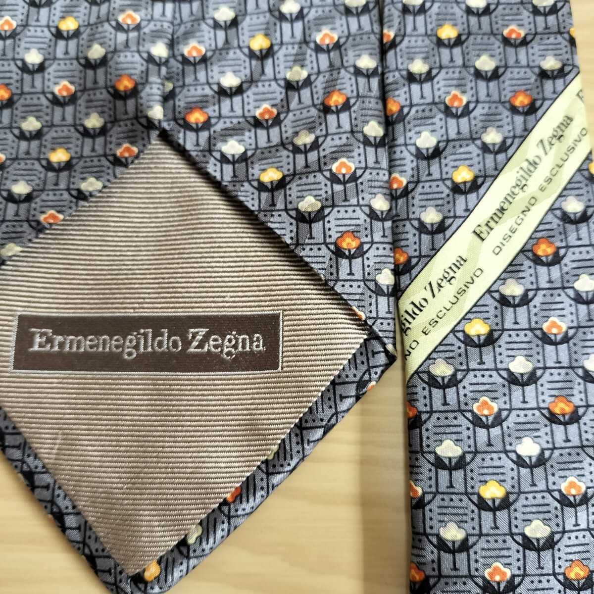 - エルメネジルドゼニア(Ermenegildo Zegna)グレーグラス模様ネクタイ