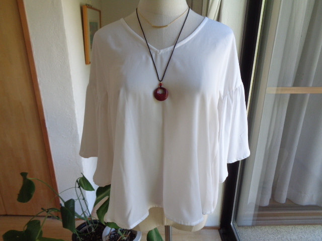 > one way V開き フレアー袖 シフォンブラウス ゆったり切り替えデザイン ドロップショルダー☆ M 白 美品(^^♪
