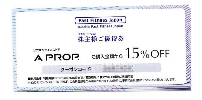 - ファストフィットネスジャパン株主優待券15%OFF4枚セット 2026/6/30