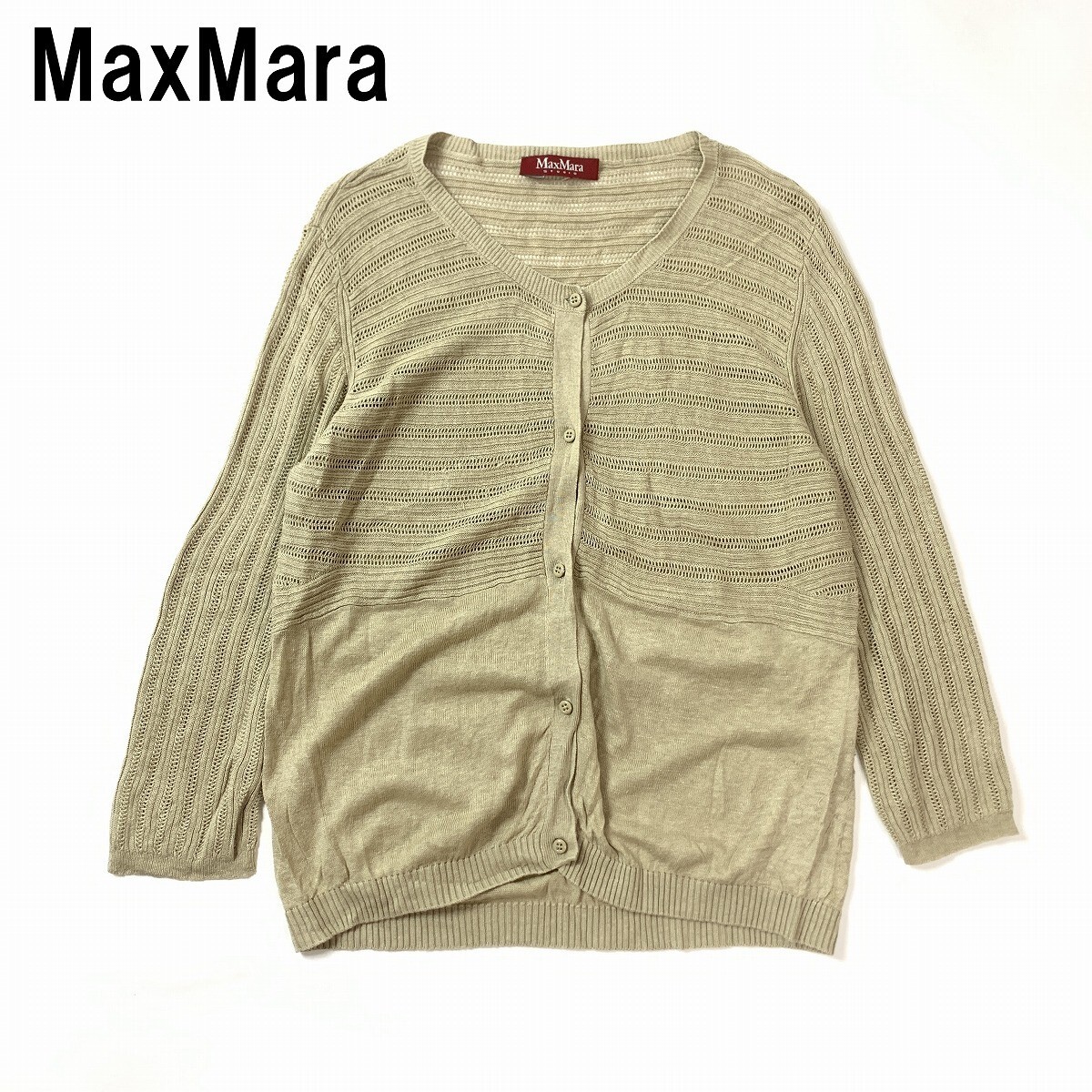 - MaxMara マックスマーラ 七分袖カーディガン 綿 コットン ベージュ L YC884