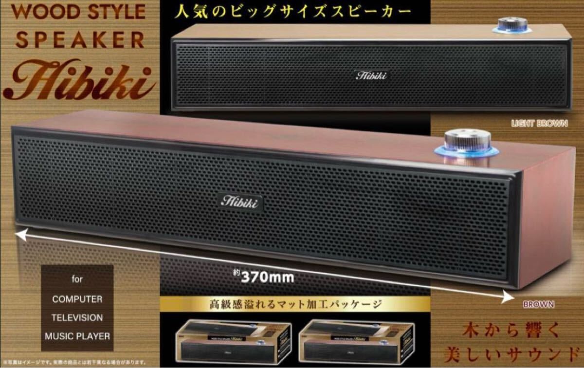 > 未開封 WOOD STYLE SPEAKER Hibiki 響 ヒビキ 木目調 ビックサイズ スピーカー 響 37cm 音楽 PC 外付け L1H-0394