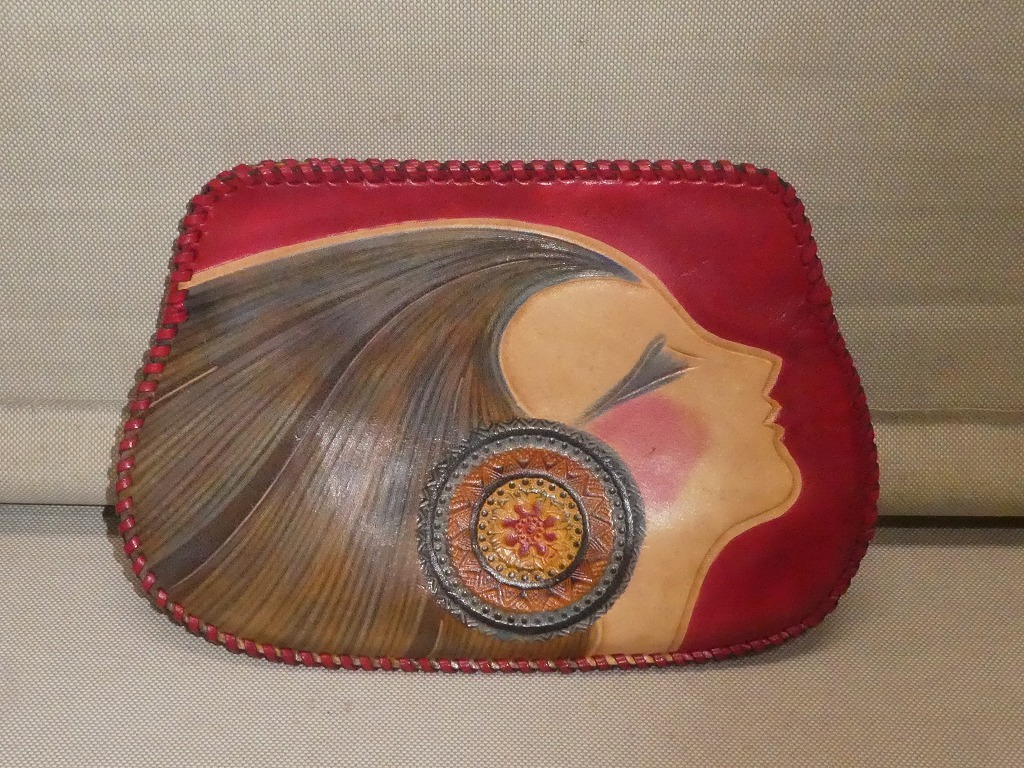 - ●レトロ 本革 レザークラフト 素敵な女性 ポーチ クラッチバッグ ヴィンテージ ハンドクラフト●