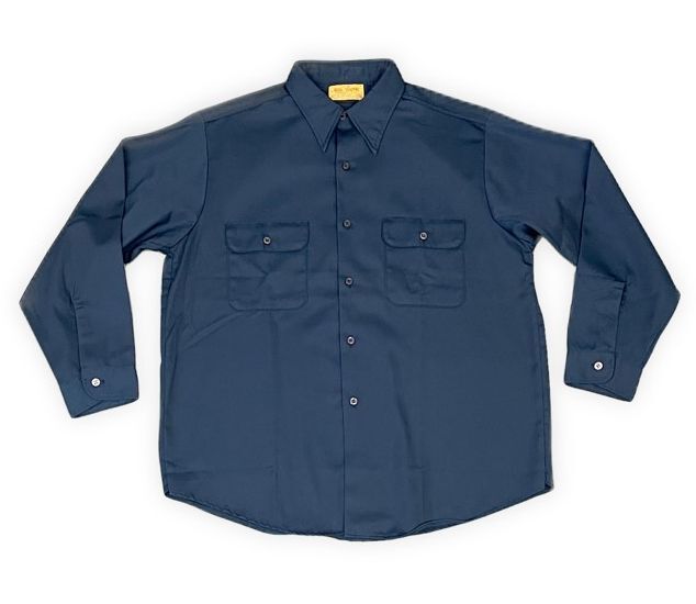 - 70's UNION MADE 米国製 BIG YANK ビッグヤンク ビンテージ ワークシャツ PARMAMENT PRESS ネイビー L 16-161/2 [la-1377]