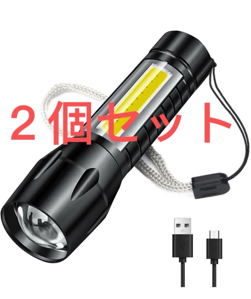 > 懐中電灯 強力 ledライト 高輝度 高級XPEライト COB作業灯 伸縮ズーム 3モ-ド調光 USB充電式 2個セット