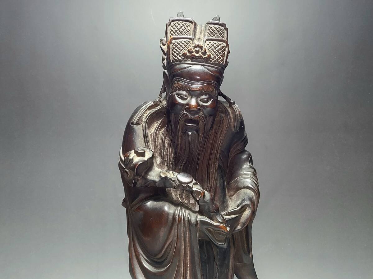> ● 高さ 約 33.7cm 人物の姿が非常に精巧で細心に彫刻された 時代唐物 唐木造 人物像・明清時代 置物 擺件 唐物 人間国宝 李朝 高麗 ●