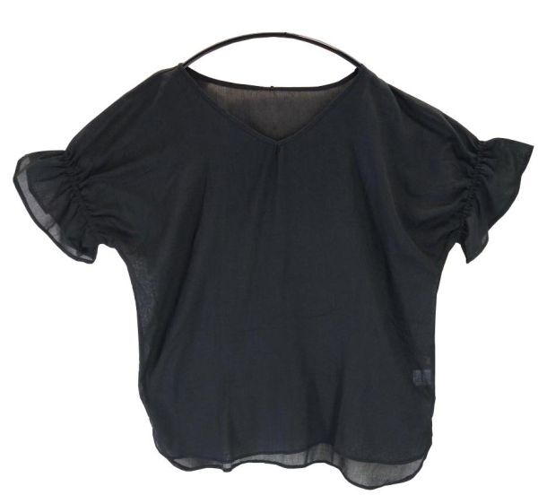 > SS2750-2◆ 新品 ブラウス 丸襟 フレアスリーブ ラウンド 薄手 通気性有り 3Lサイズ 黒 ブラック 送料 450円