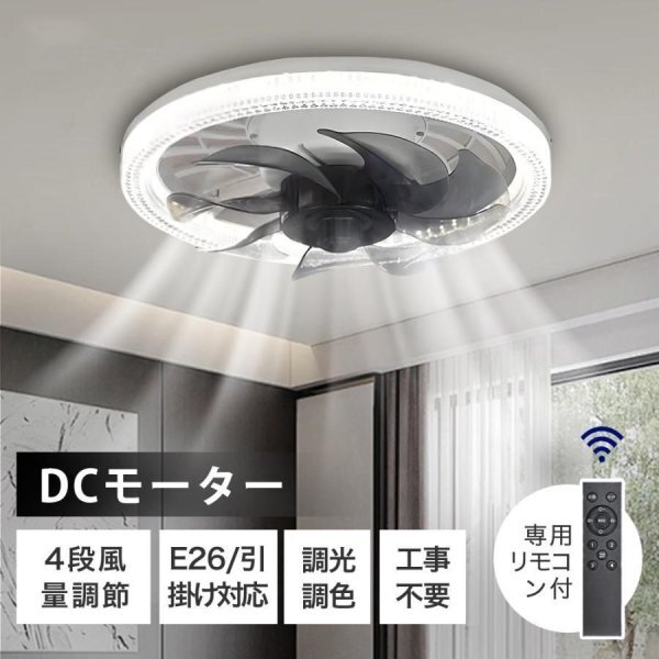 - シーリングファンライト LED 調光調色 dcモーター シーリングファン リモコン付き シーリングライト E26 LED電球 天井照明 扇風機 脱衣所
