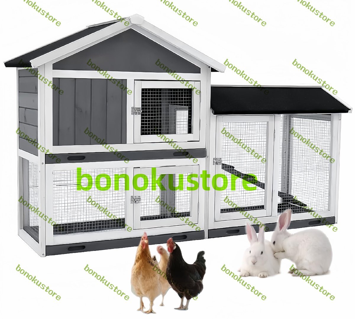 - 鶏小屋 鶏用ケージ 木製 鶏舎 大型 2階建てのヘンハウス 155*54*94cm 6羽用 複数のドア付き 取り外し可能な底 水で洗える 屋外 耐候性