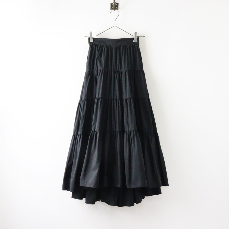 - シートーキョー SHE Tokyo Lisa ナイロンツイル ティアードギャザーフレアロングスカート 34 ブラック/ボトムス【2400014547245】