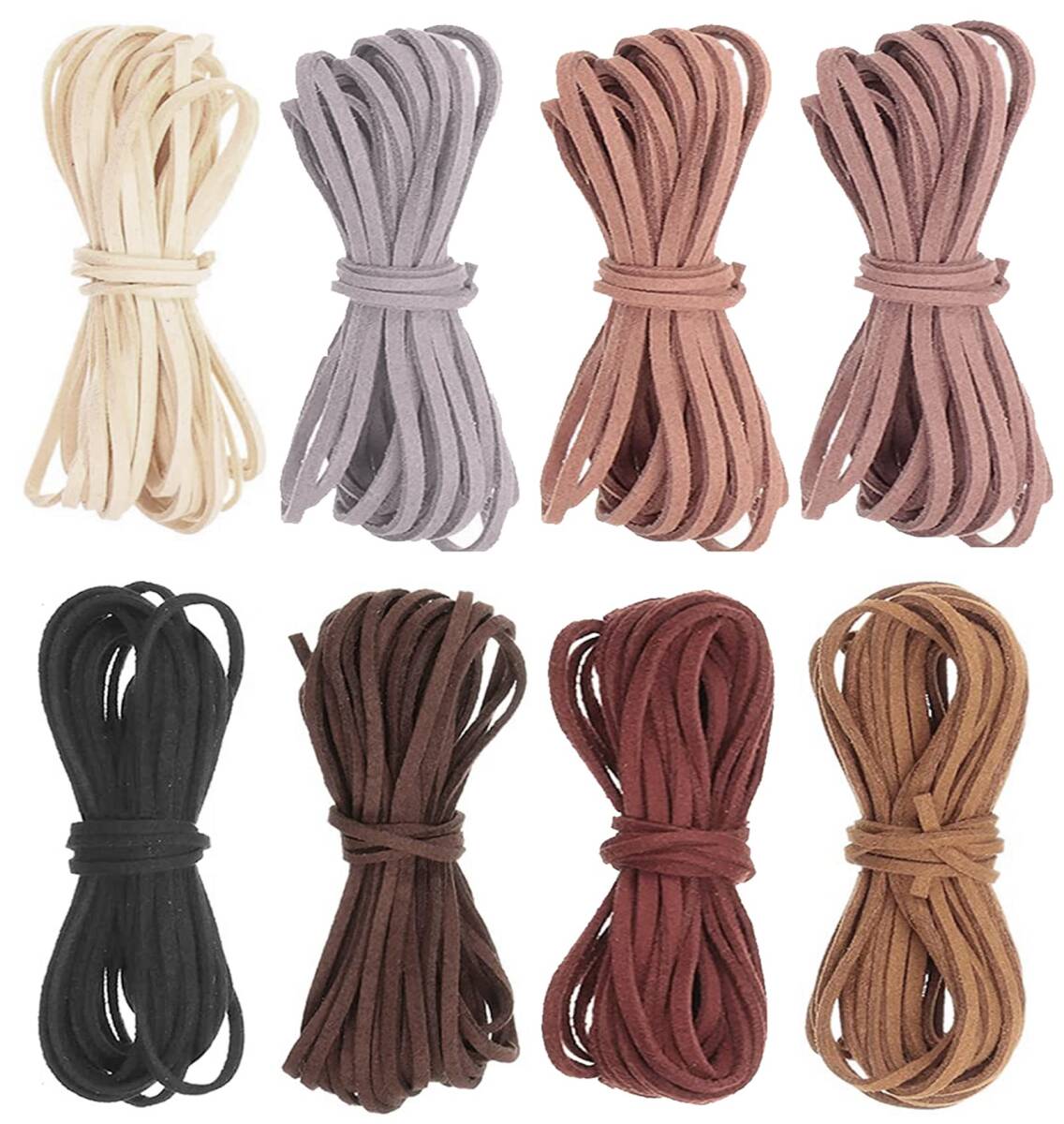 - スエード 革紐 8色セット 各長さ2m 全長16m 幅3mm 革ひも 皮ひも レザー 紐 レザークラフト アクセサリー用紐 DIY