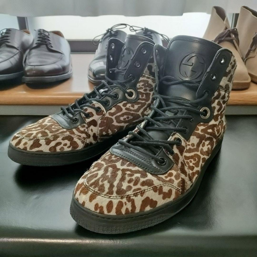 - GUCCI グッチ スニーカー レオパード 309292 メンズ ハイカット ハラコ