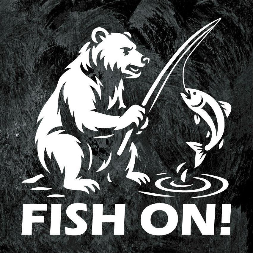 - 釣り カッティングステッカー 転写シール 熊 ベア FISH ON! 車やクーラーボックスに